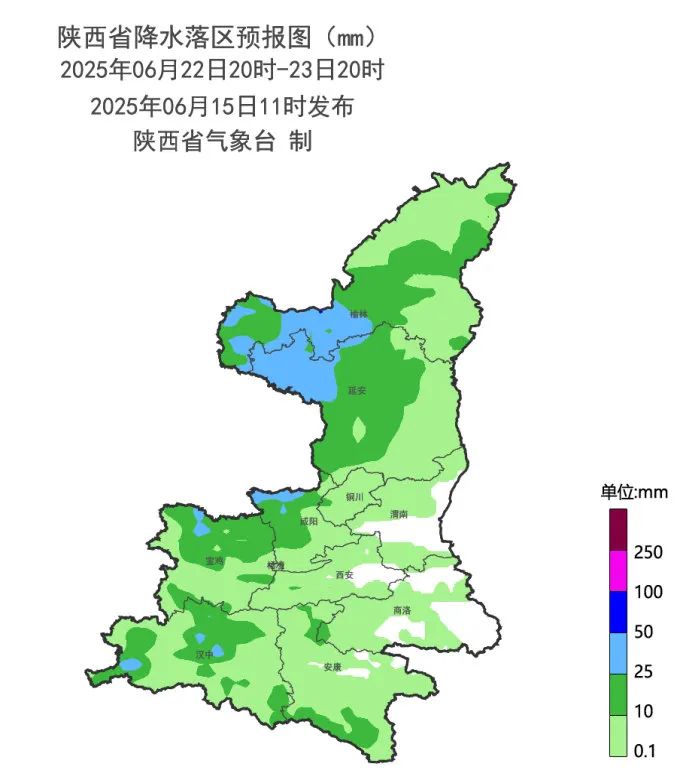 6月24日:全省阴天转多云,陕北、关中北部、陕南南部有分散性小雨或阵雨(0-10mm)。