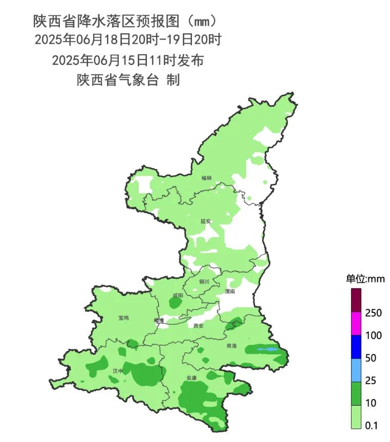 6月19日:全省阴天,陕北大部、关中大部有分散性小雨或阵雨(0-5mm),陕南有小到中雨(2-20mm)。
